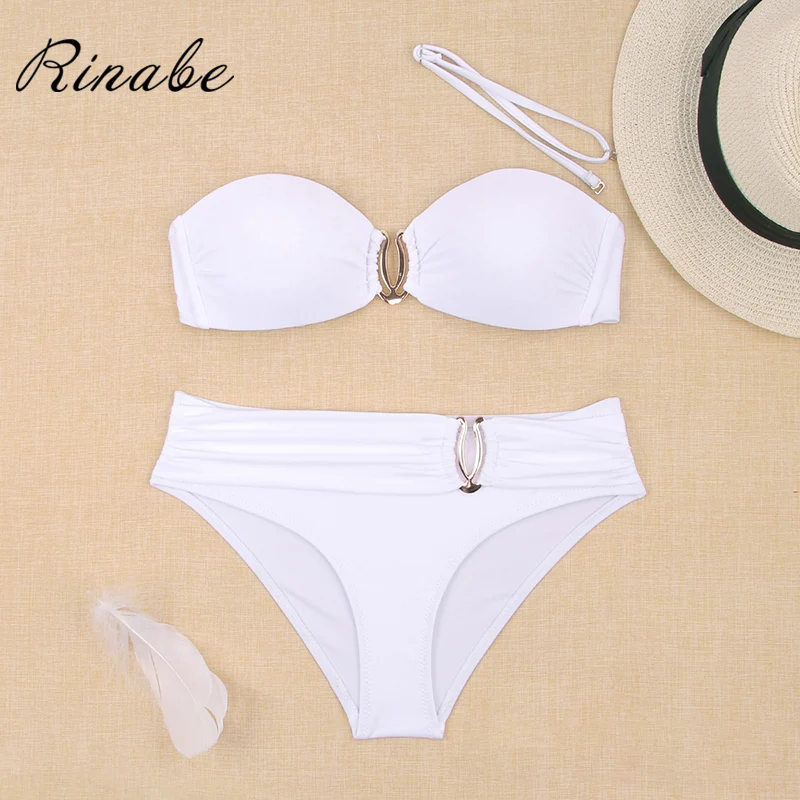 Rinabe 2019 Sexy Push Up Bikini Bandeau Swimsuit Female Yellow Swimwear Solid Bathing Suit Women Bra Bikini Set Print Biquini :Click Here