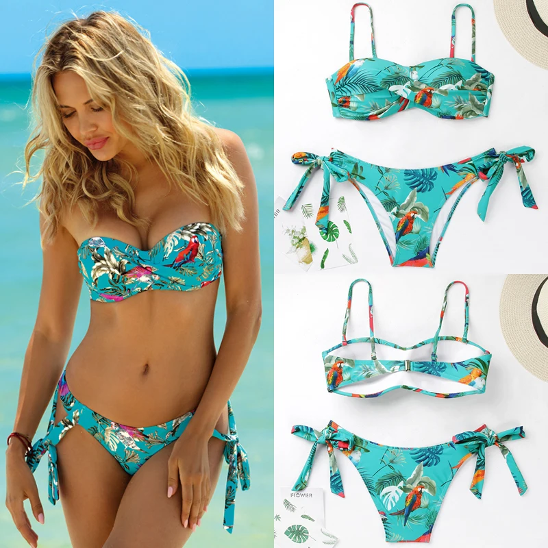 Floral Print Bikini Female Swimswear Bandeau Biquini Bandage Swimsuit Women Bathing Suit Push Up Bikini Set Sexy Bikinis 2020 :Click Here