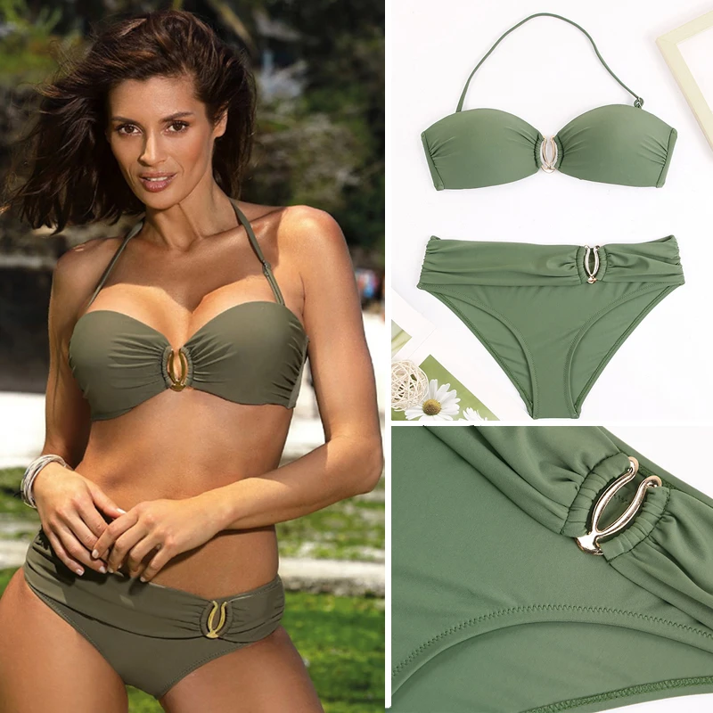 Trend Sexy Bikini Push Up Solid Swimsuit Female Bikinis String Bathing Suit Women Swimwear Bandaeu V Neck
