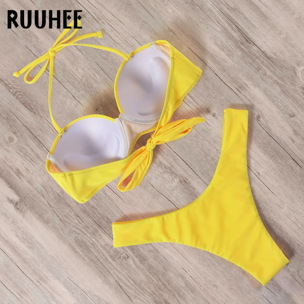 RUUHEE Brazilian Bikini 2019 Swimwear Sexy Women Swimsuit Solid Bikini Set Push Up Bathing Suit Women High Cut Beachwear Biquini :Click Here